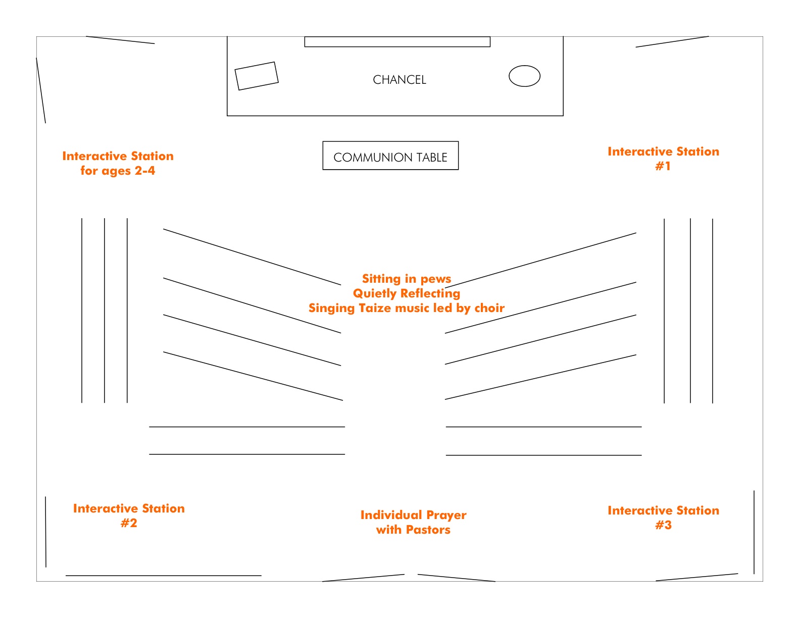 Six years ago, my Head of Staff went on sabbatical. During his time, he traveled around Europe and attended churches having St. Thomas Mass. It was a postmodern style worship that began in Europe, targeting what they called “doubters,” hence the name. Their goal was to give opportunity for people to encounter their faith in a way that was tangible, meaningful, experiential, and reflective. Adapting from this model, we began offering interactive prayer stations on certain Sundays as a way to engage in God’s word and intentionally connect with our faith in tangible ways. We’ve been offering these opportunities for four years now and it is a great way to offer worship that is intergenerational, reflective yet active, and creative. The sermon time is used to set up the focus of the prayer stations. Then, in place of what would normally be “prayers of the people,” we invite people to participate in any or all of the prayer stations at their leisure. Because all ages can participate, we don’t offer Sunday School on Interactive Sundays. This gives families a wonderful opportunity to worship together and engage in faith conversations. For visitors and those who choose not to participate, they are free to remain seated and are invited to listen and sing taize style music. For those who desire and need prayer, pastors stand in the back for personal prayer time.