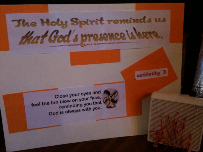 Here is an example of an interactive prayer station I designed for preschoolers on Pentecost.