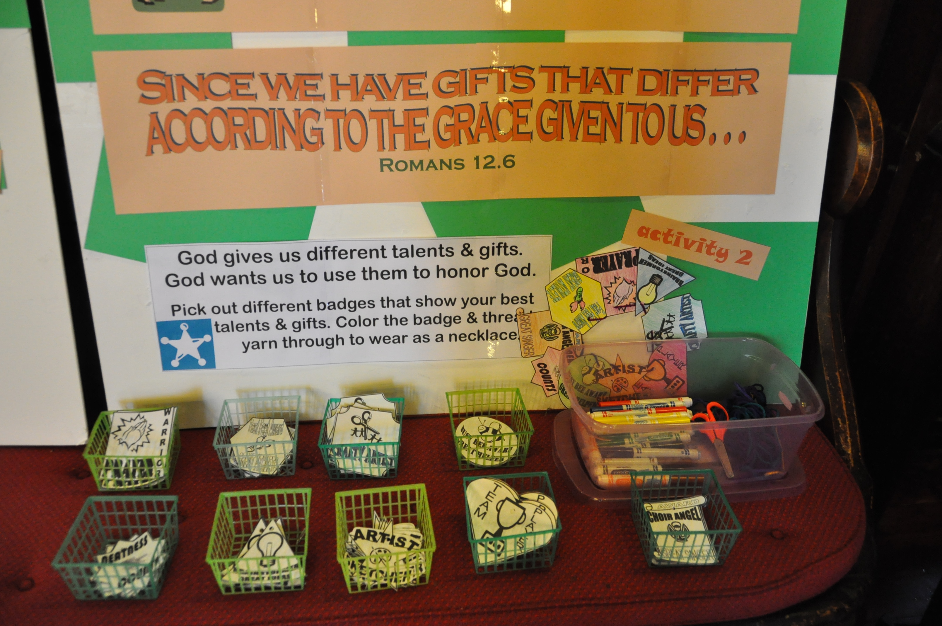 Activity Two: Pick out different badges that show your best talents & gifts. Color the badges and thread yarn through to make a necklace.