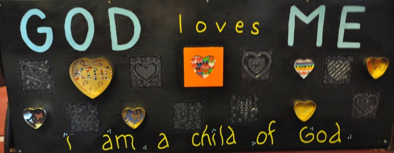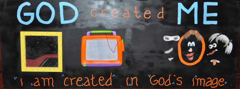 Board #1: God Created Me – opportunity to examine one’s face, draw their own creation, and create their own face.