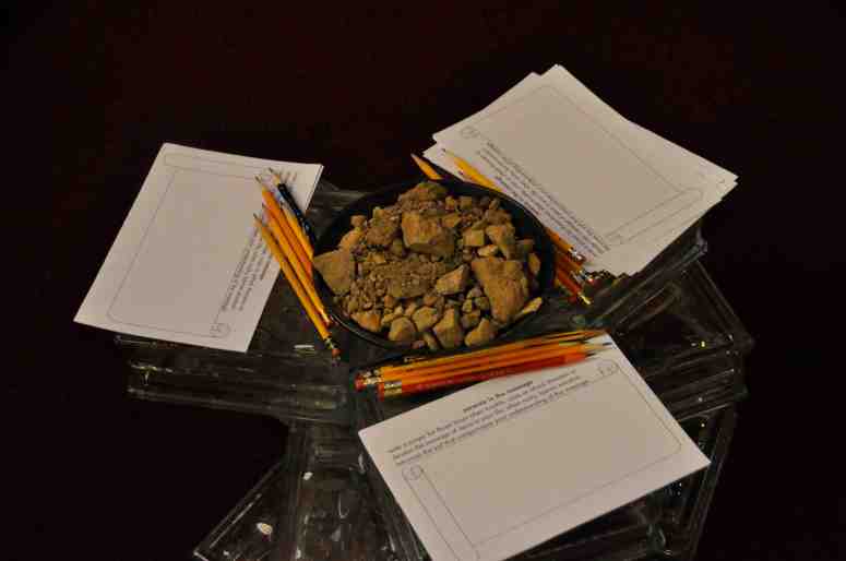 Materials: Glass blocks, Bowl of Rocky Soil, Paper, Pencils