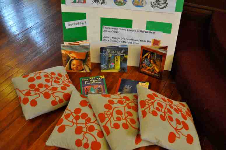Materials: A variety of Children’s Books on the birth of Christ, such as, Bright Christmas : An Angel Remembers by Andrew Clements and Kate Kiesler, The Stone: A Persian Legend of the Magi by Dianne Hofmeyr, The Greatest Shepherd of All: A Really Woolly Christmas Story by Holly Gerth and Rosemary Harris, The Shepherd’s Christmas Story by Dandi Daley Mackall and Dominic Catalano, Mary’s First Christmas by Walter Wangerin, Spirit Child: A Story of the Nativity (Aztec) by J Bierhorst and B Cooney