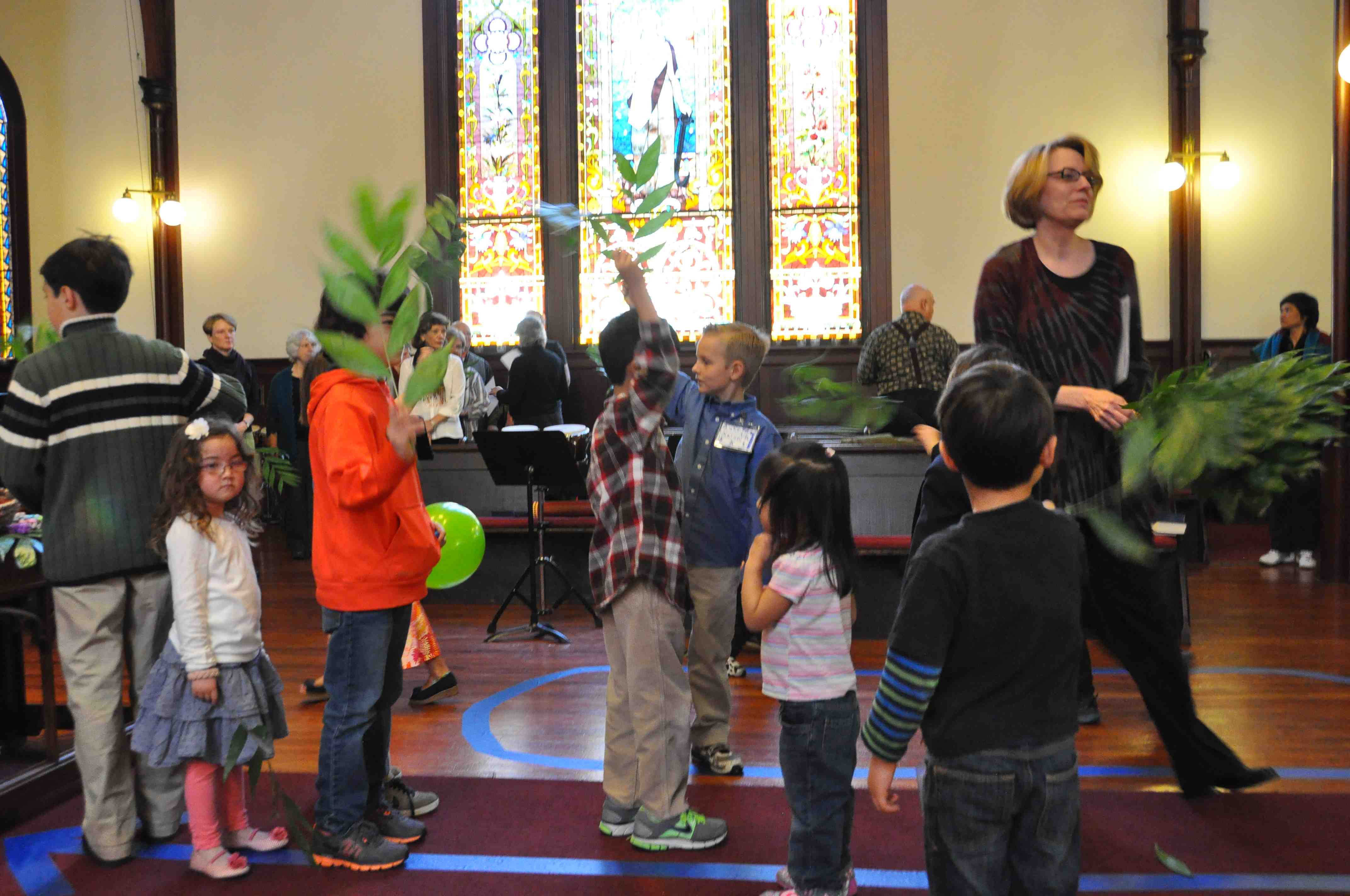 At the end of worship, the kids and adults waved their palms and exited singing “Hail and Hosanna.”