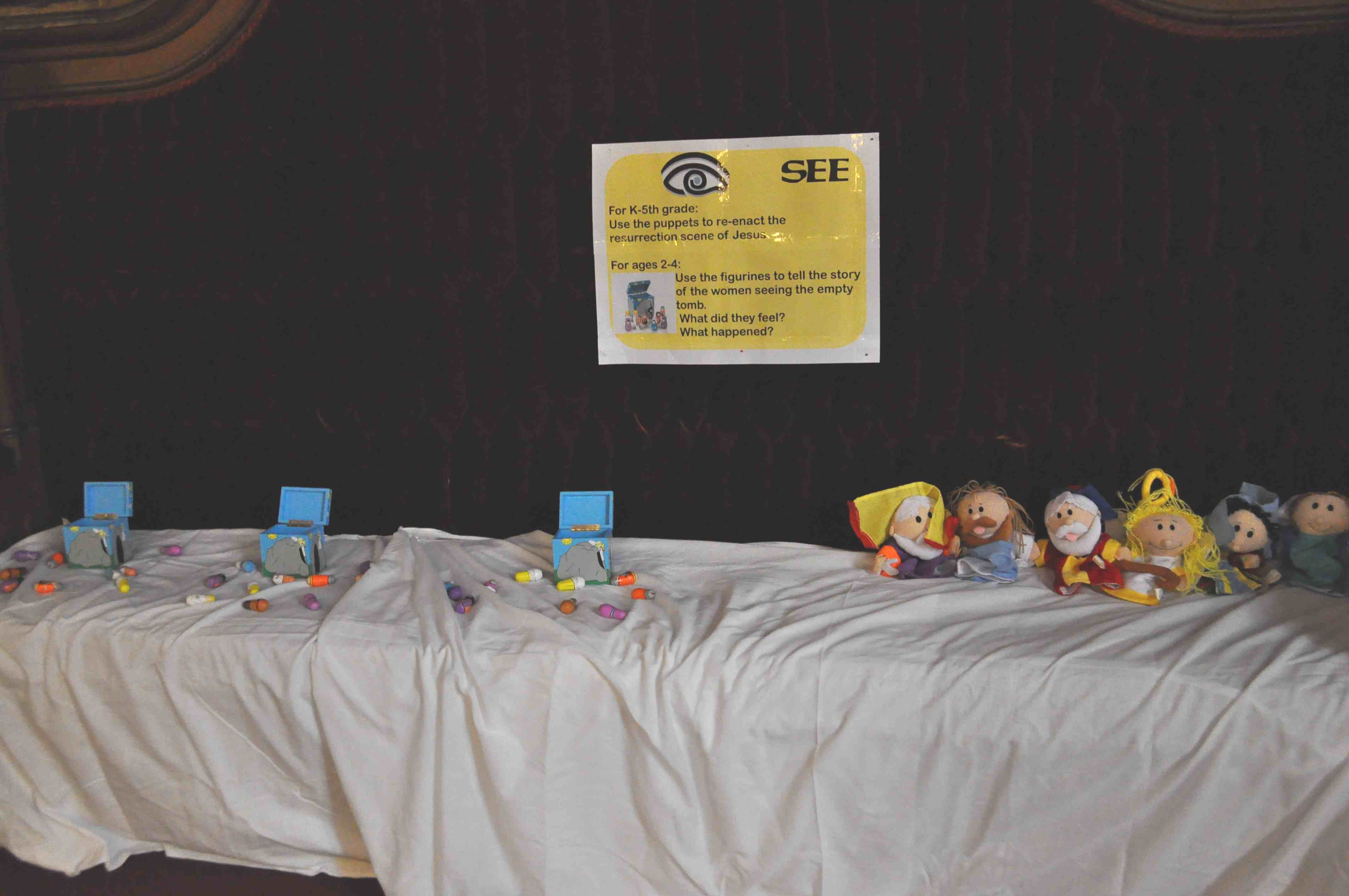 Activity three: For K-5th grade: Use the puppets to re-enact the resurrection scene of Jesus. For ages 2-4: Use the figurines to tell the story of the women seeing the empty tomb. What did they feel? What happened?