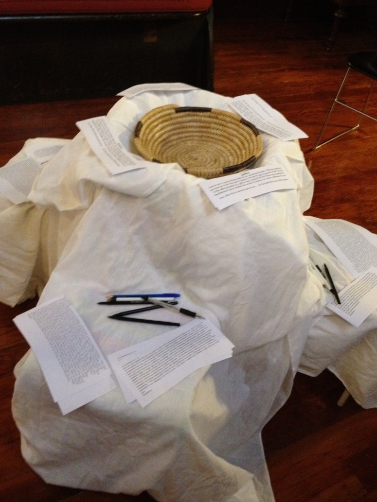 Materials: Pens, Basket, White Cloth, Copies of Mark 4.35-41 and John 3.1-17