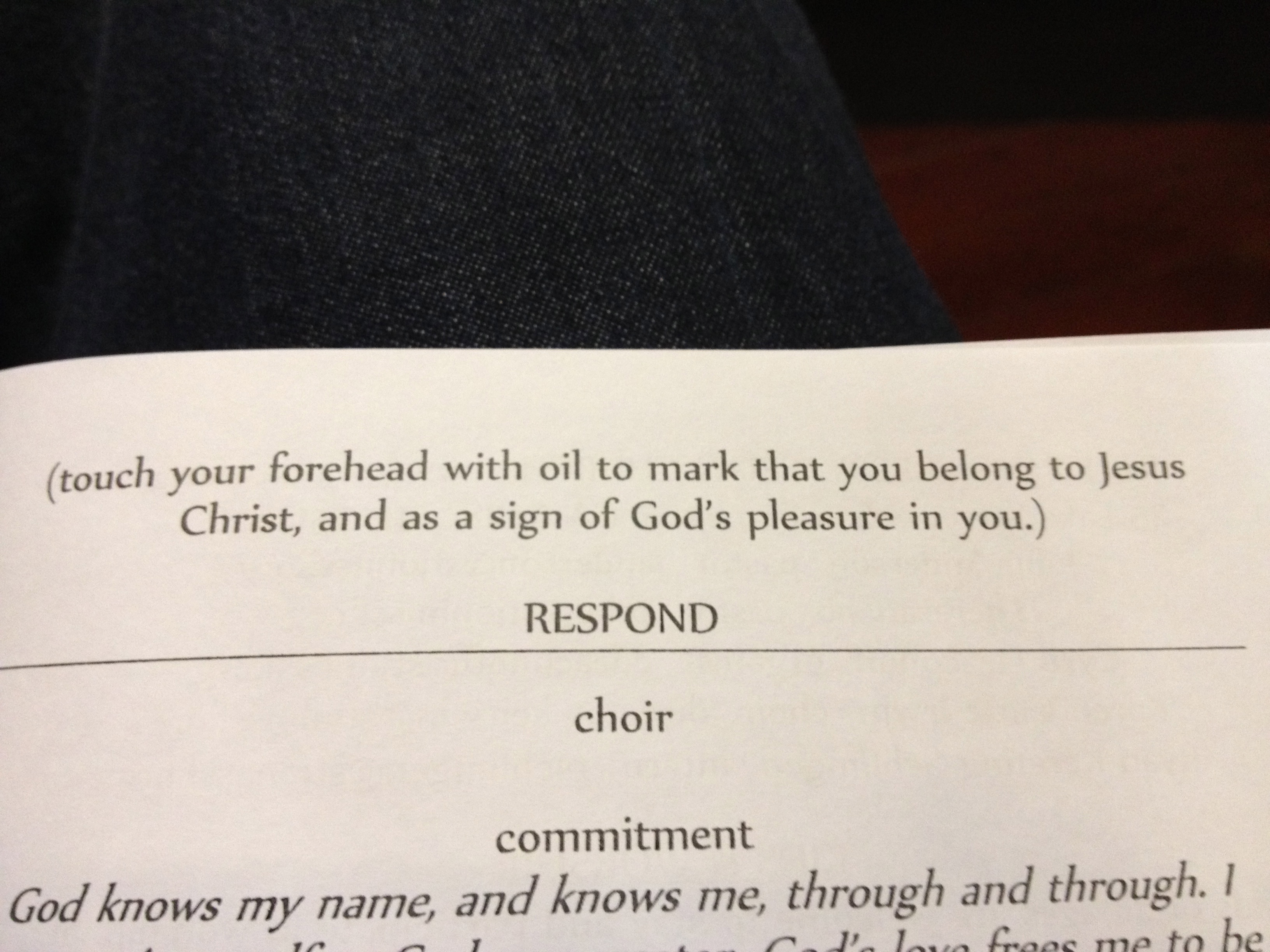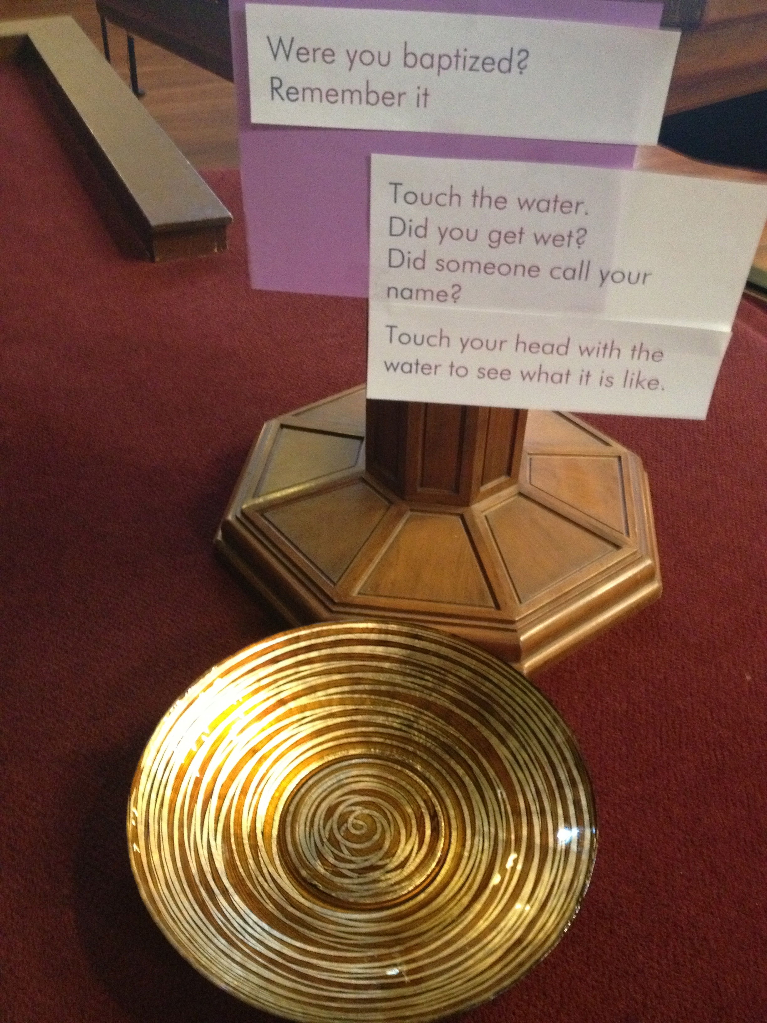 In the middle of the Sanctuary we had a small bowl of oil and towels with the following instructions: