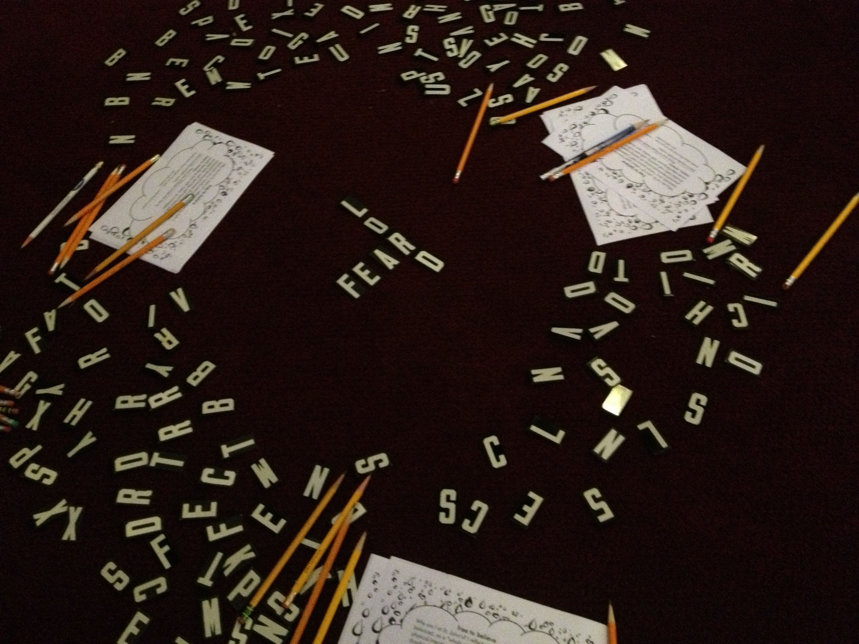 Materials: Paper, Pens, Letter Tiles
