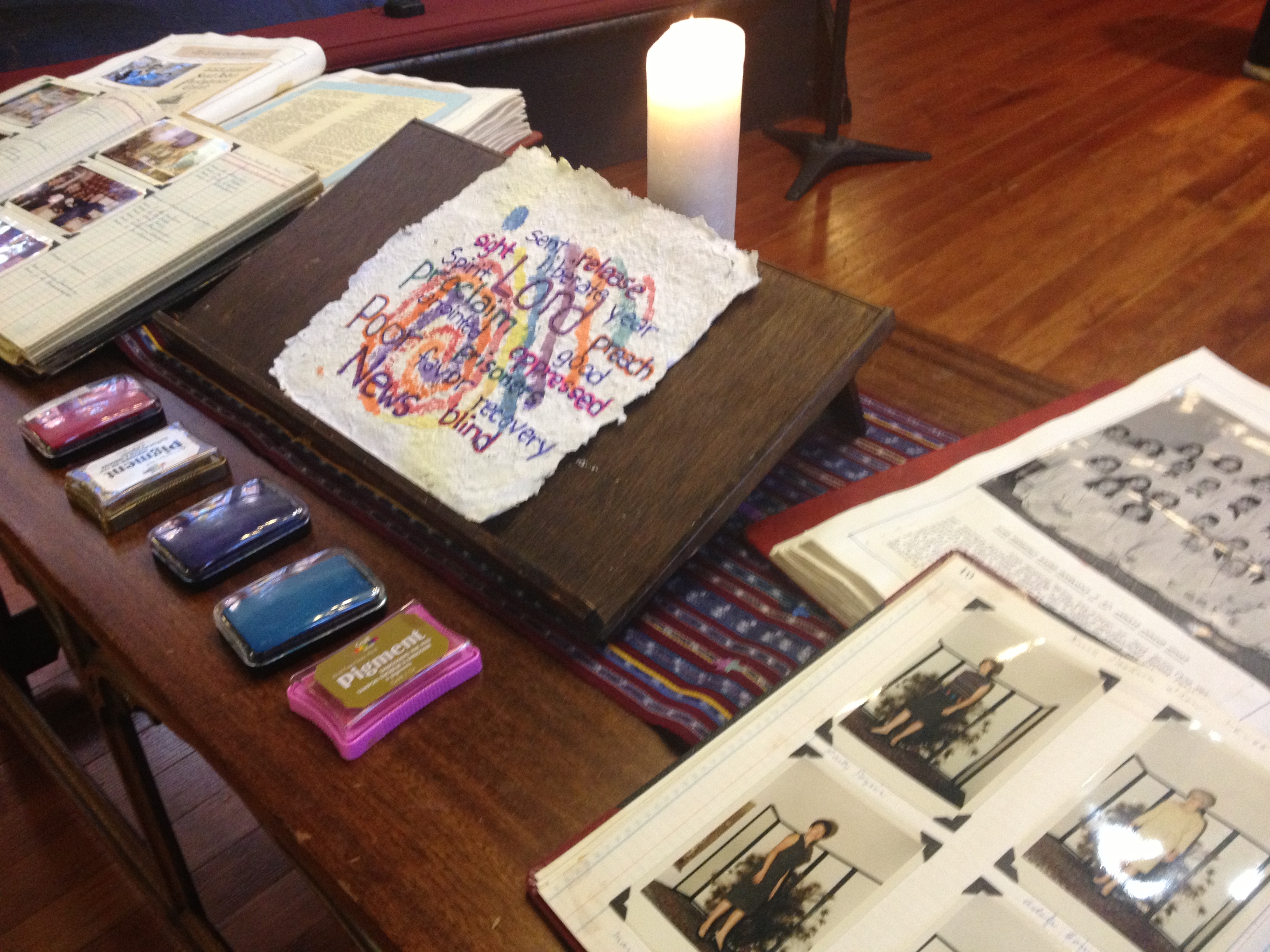 While still wet, I displayed them for people to see. What was cool about the paper is that if you looked closely, you can see hints of what people wrote. I displayed the paper as a symbol that we are all in process – process of claiming who we are, trusting God in whose we are, and living faithfully God’s call on our lives.