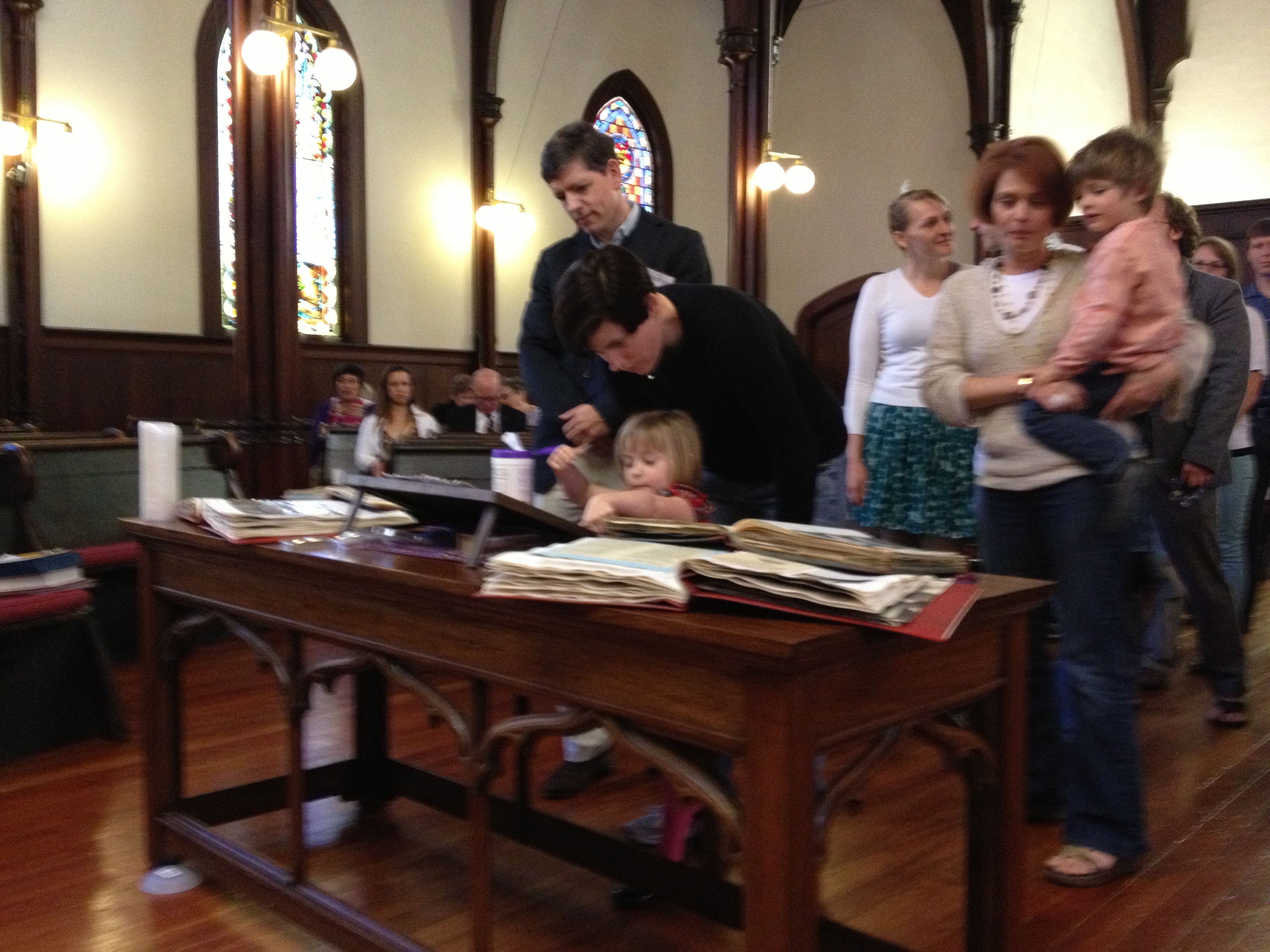 The final Sunday of Lent was also my church’s 143rd anniversary. I put some old photo albums out to display on the communion table.
