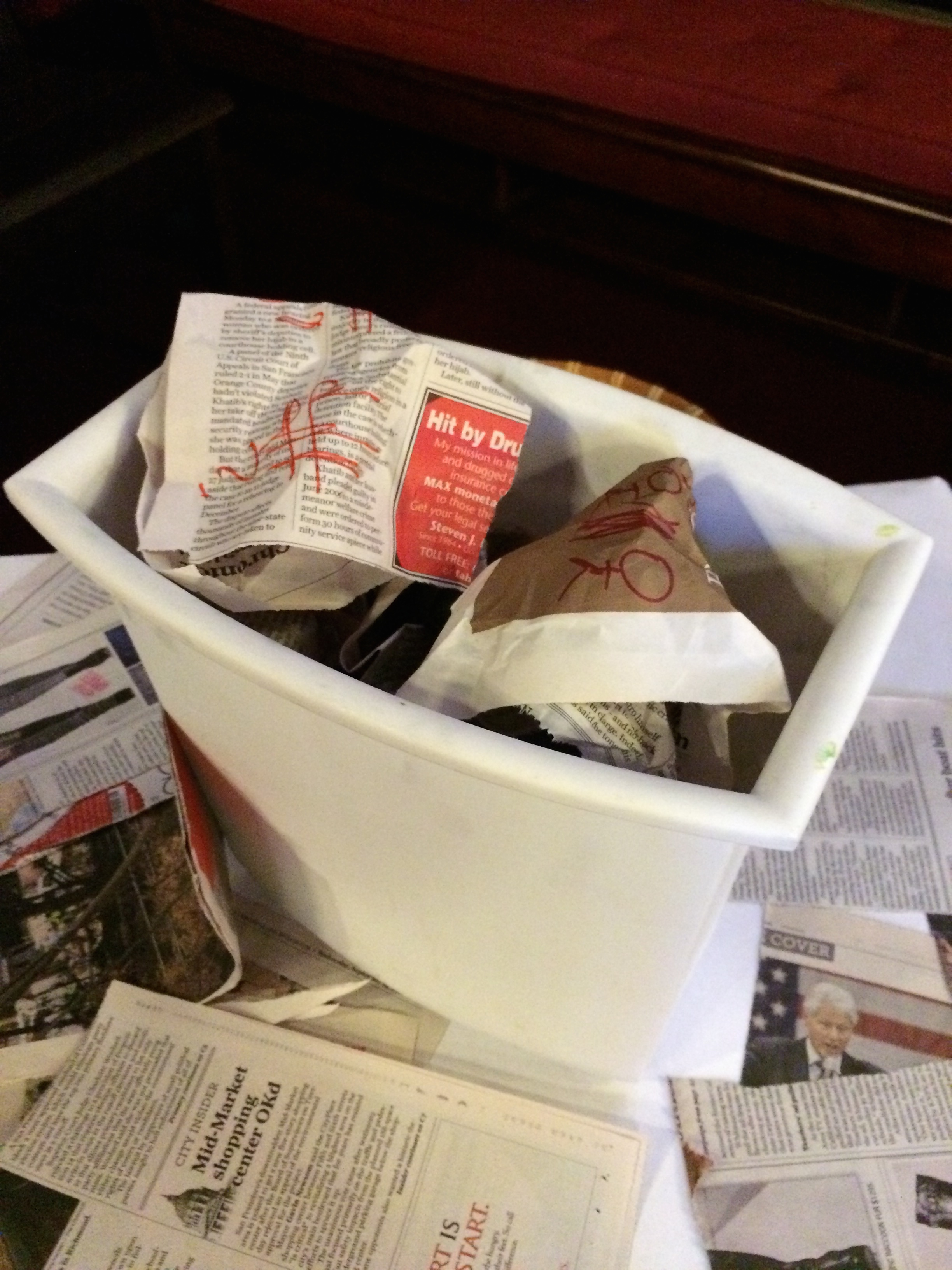 Materials: Trash Bin, Newspaper Scraps, Markers