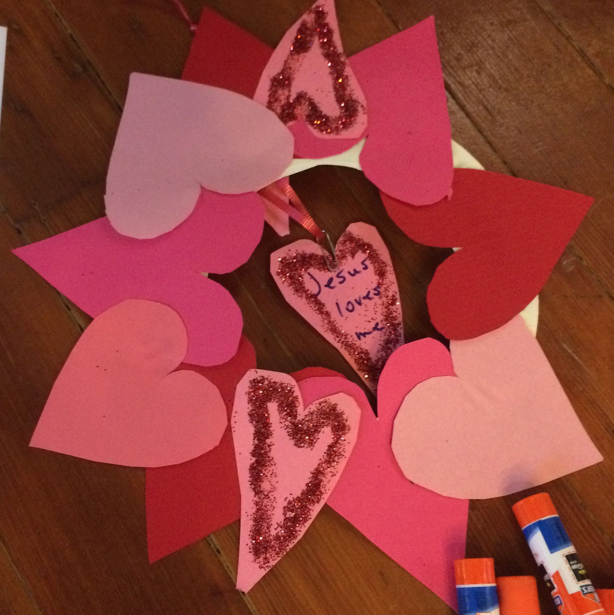 Make a Valentine wreath for someone, to remind them that Jesus loves them.