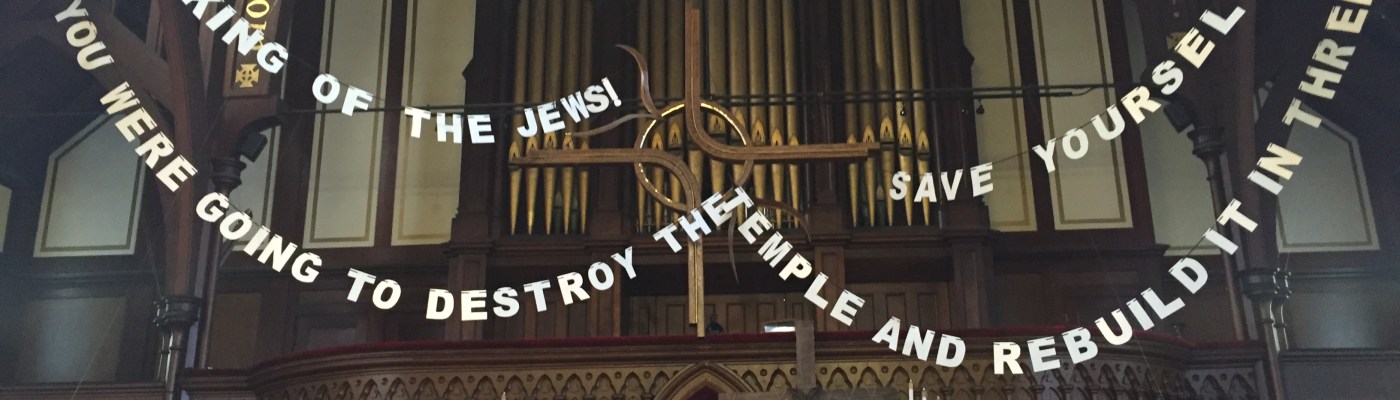 For Easter, I decorated the sanctuary by hanging cut out letters of scripture quotes from the Good Friday and Easter story.