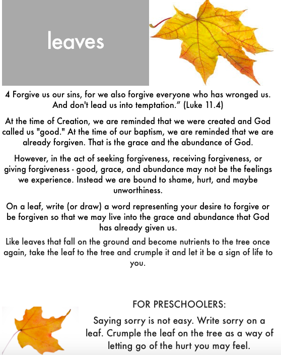 Interactive Prayer Stations on Creation and Forgiveness (Gen 2-3)