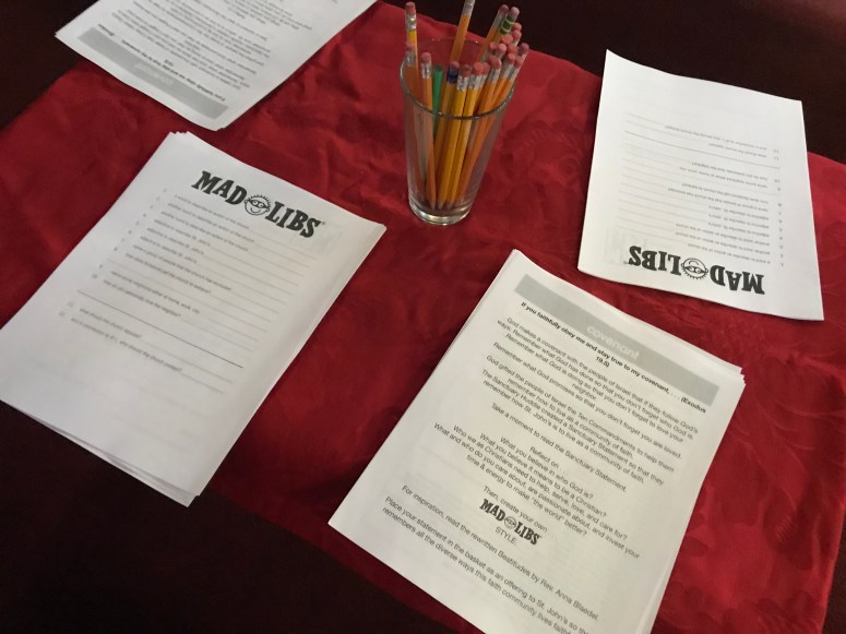 Materials: Pencils, Sanctuary Statement Mad Libs