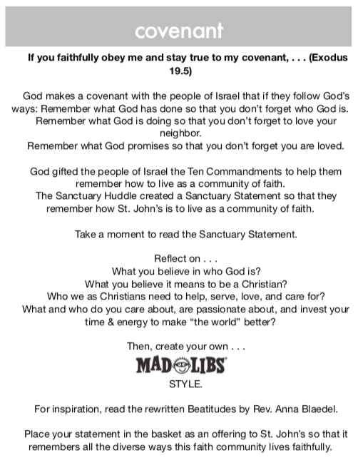 Interactive Prayer Stations on Immigration, Faith Statements, & Outreach (Exodus 19)