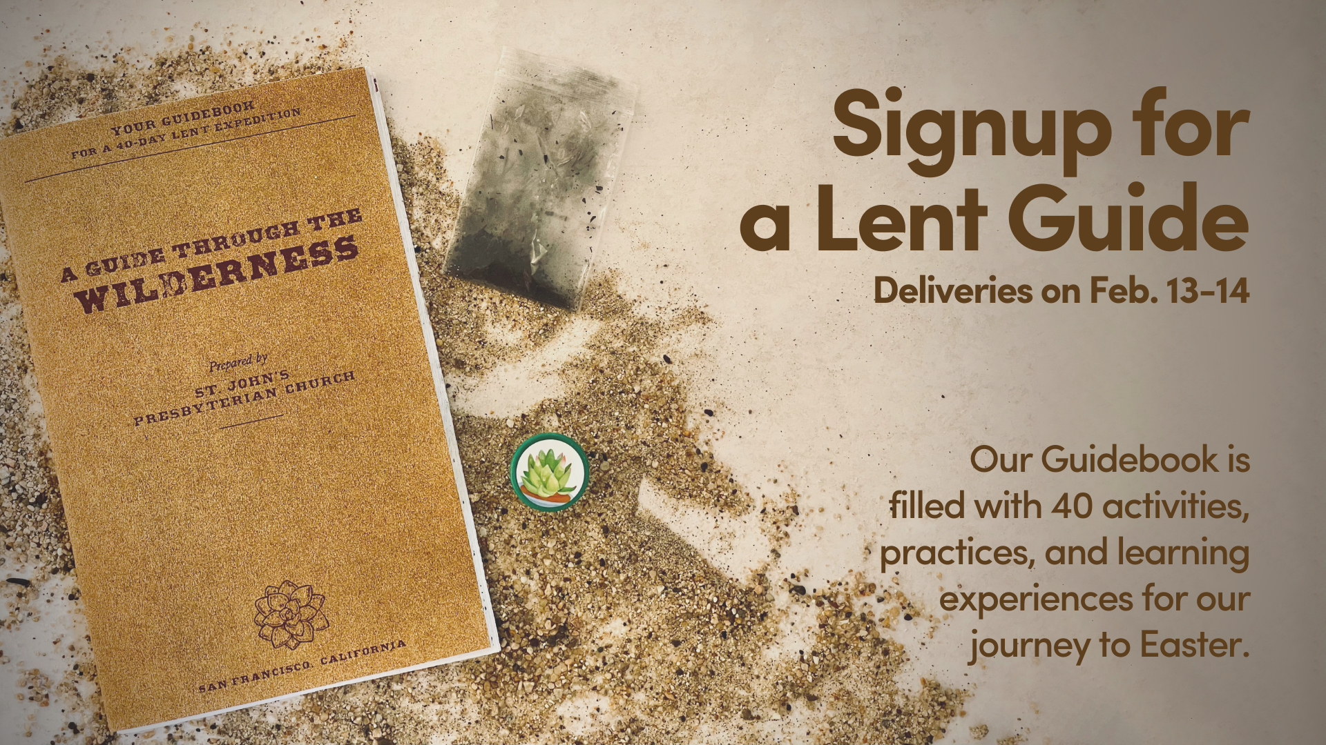 With each Guide Book, a packet of ashes for Ash Wednesday and a succulent stamp was included. As participants finished selected activities, they could use the stamp to mark completion.