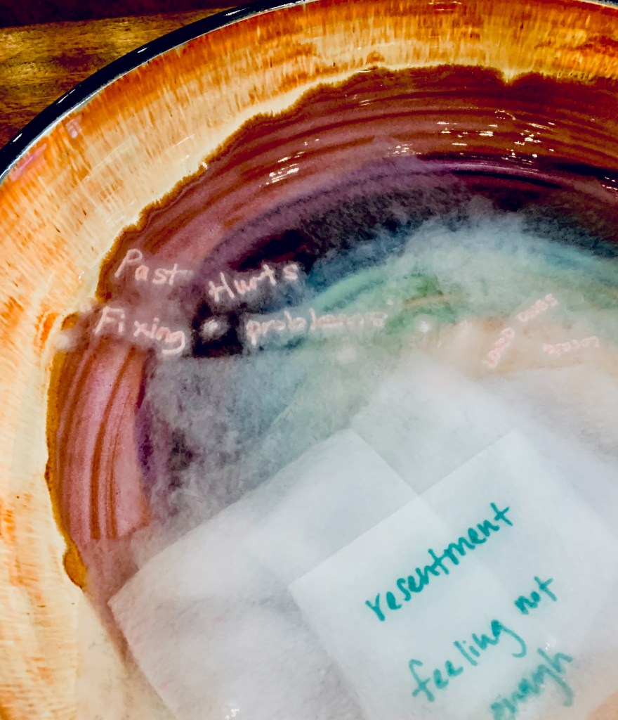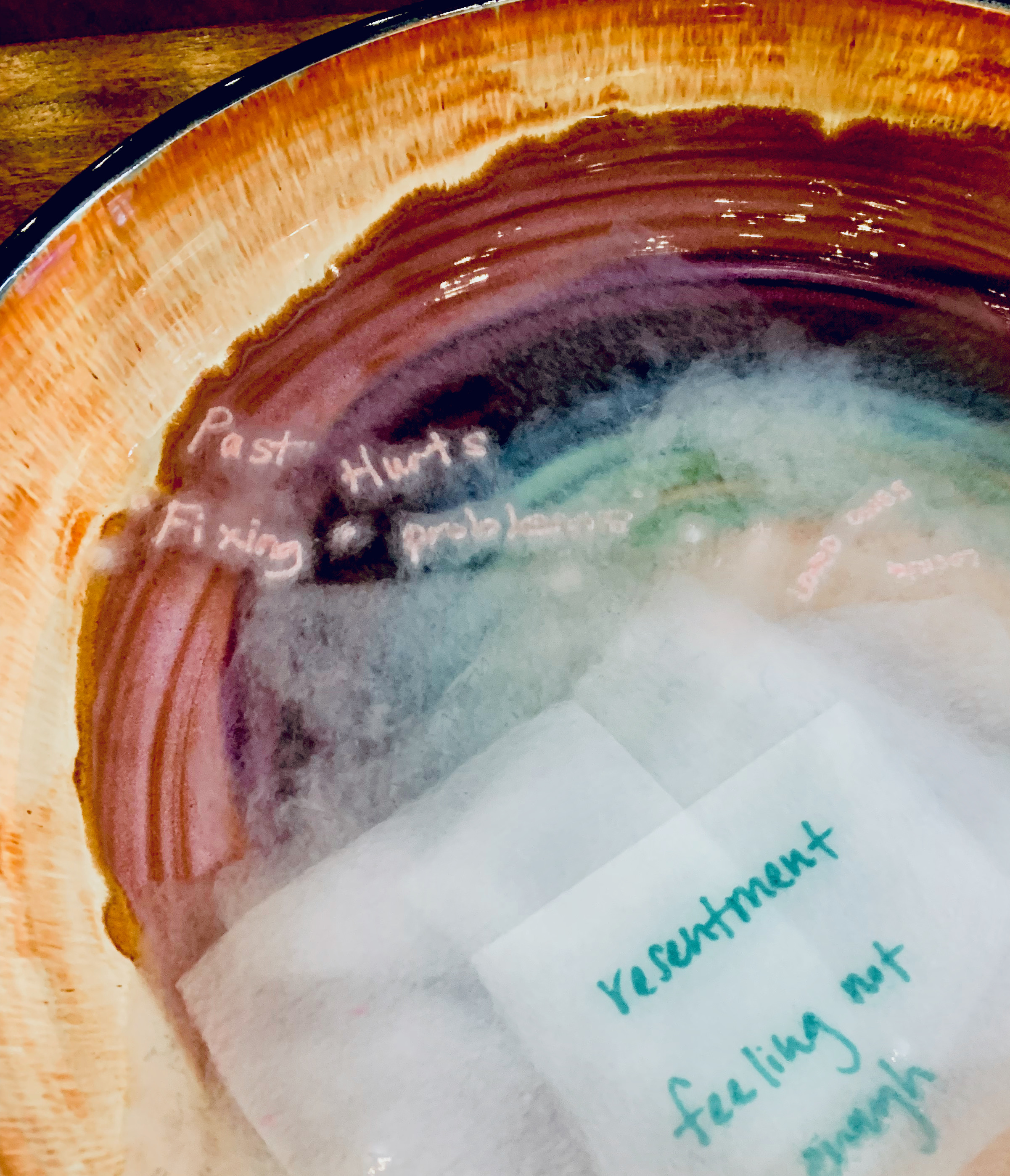 Participants may want to write something they need to let go of – maybe it is the weight of loss or grief that they have been carrying for a while – maybe it is fear of the unknown.