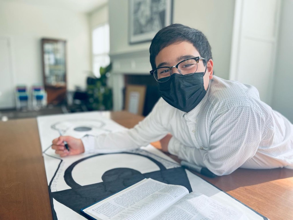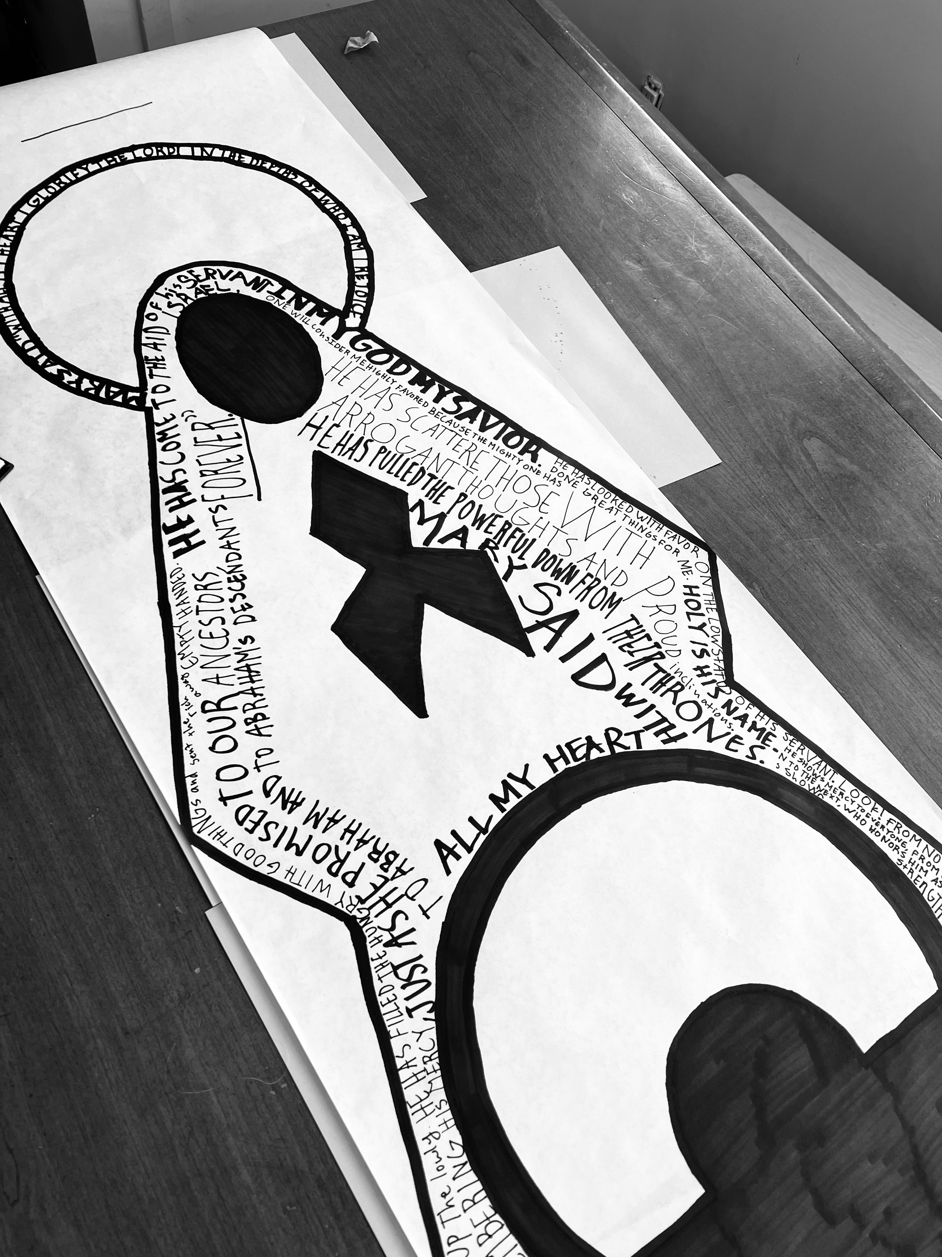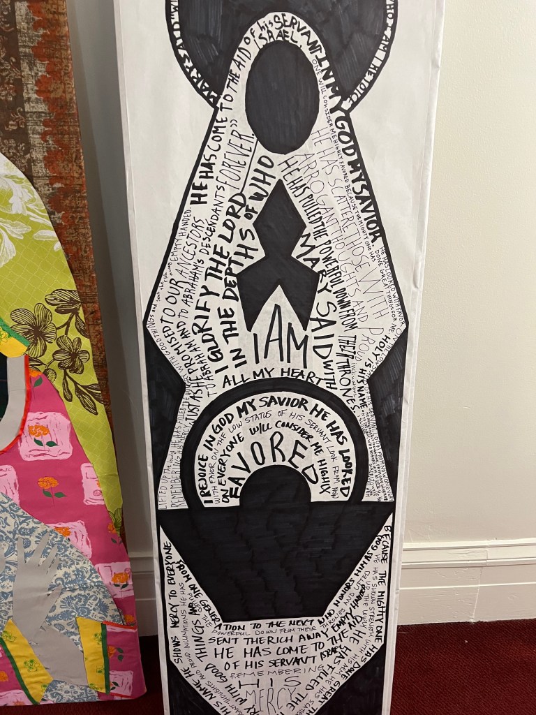 I used this stock photo for a basic outline of Mary. I had the youth copy the words of the Magnificat in the image.