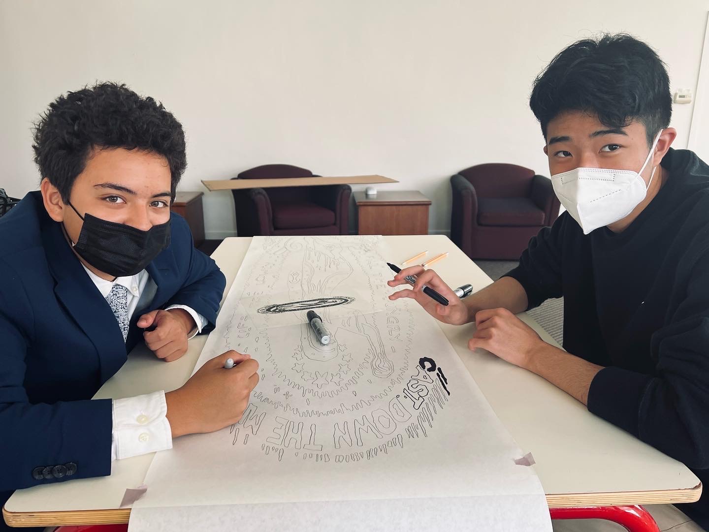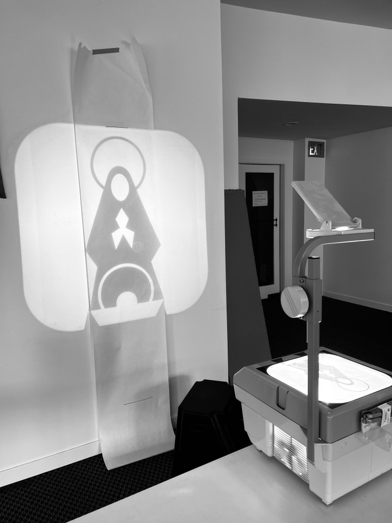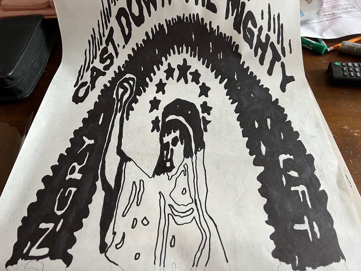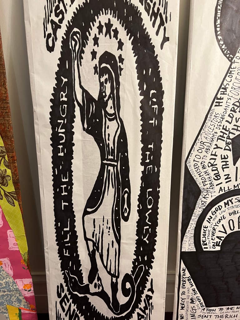 I had the youth copy this image of Mary using a projector and black Sharpies. This image is created by Ben Wildflower who felt that there are too many images of Mary as meek and mild.