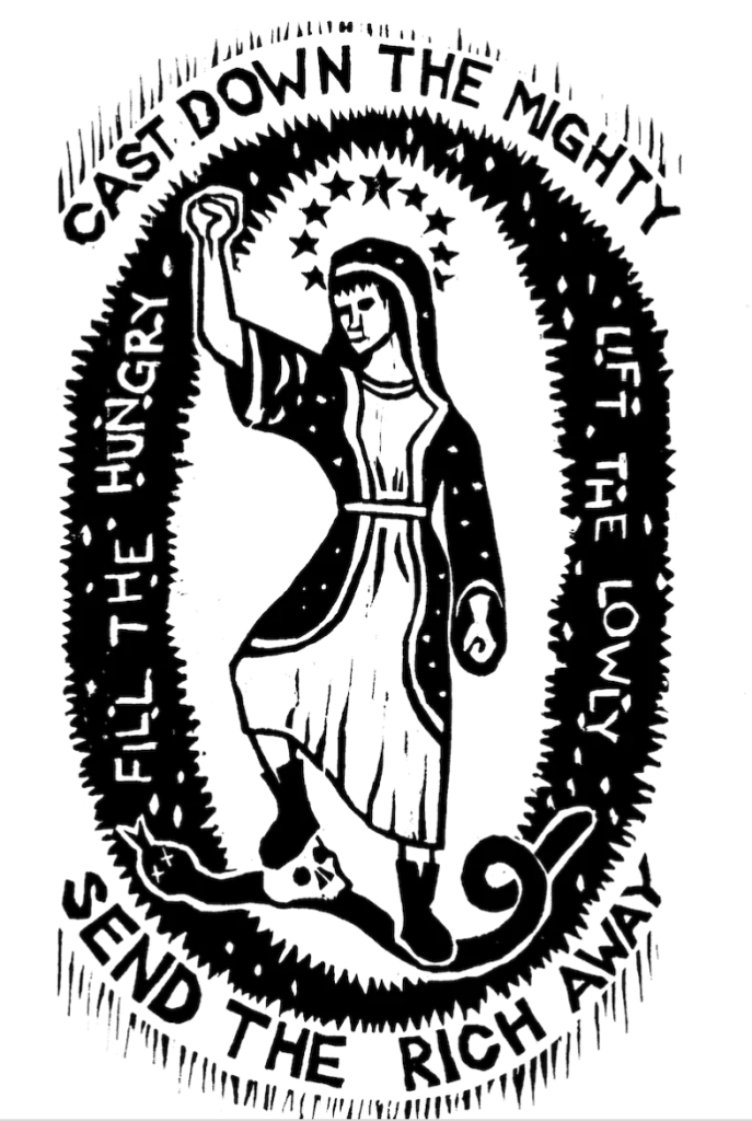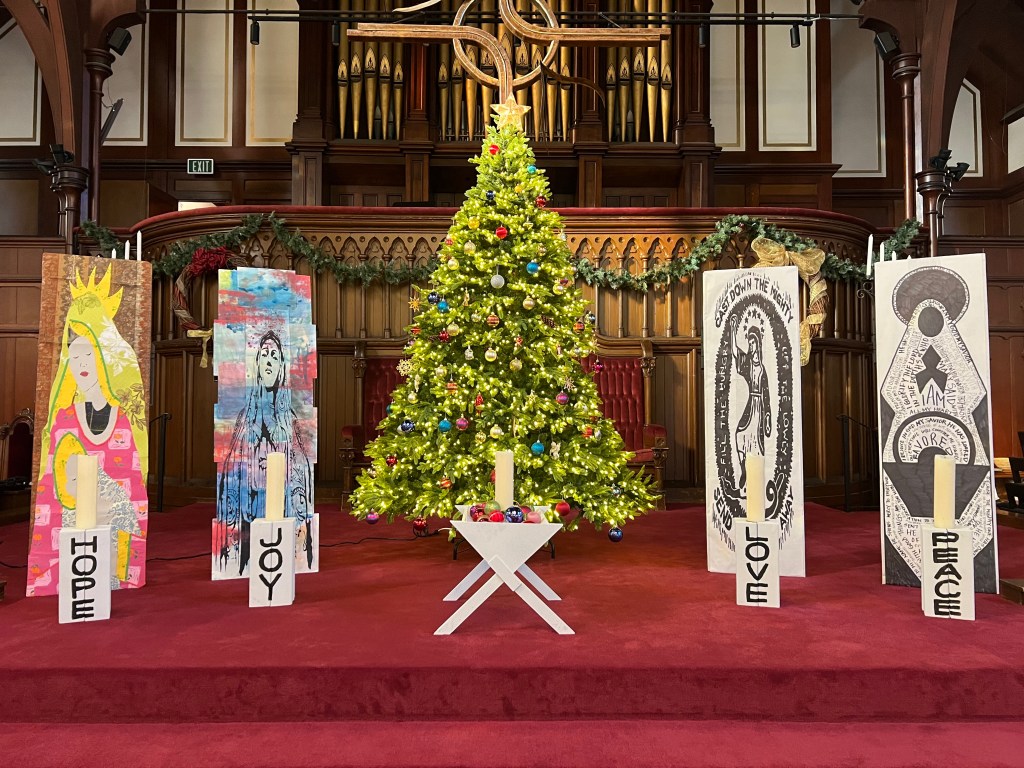 This image of Mary was paired with the Advent candle of Love. The special song was Traci Chapman’s “Talkin’ About a Revolution.” We wove the words of the Song of Miriam, Hannah, Deborah, and Mary in between the song. We also led the congregation in singing “Joy to the World” as a protest song – a song that claims how Christ is already changing the world and we are to participate in that change.