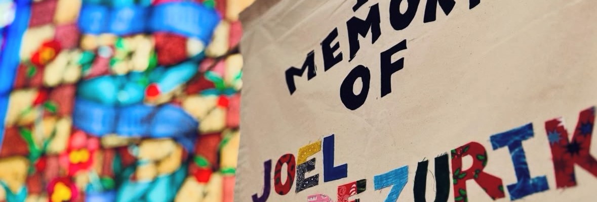 These banners were made by several faith communities using letters cut out from colorful scraps of fabric. They were displayed at the steps of City Hall as each name was read out loud during a vigil held around Winter Solstice.
