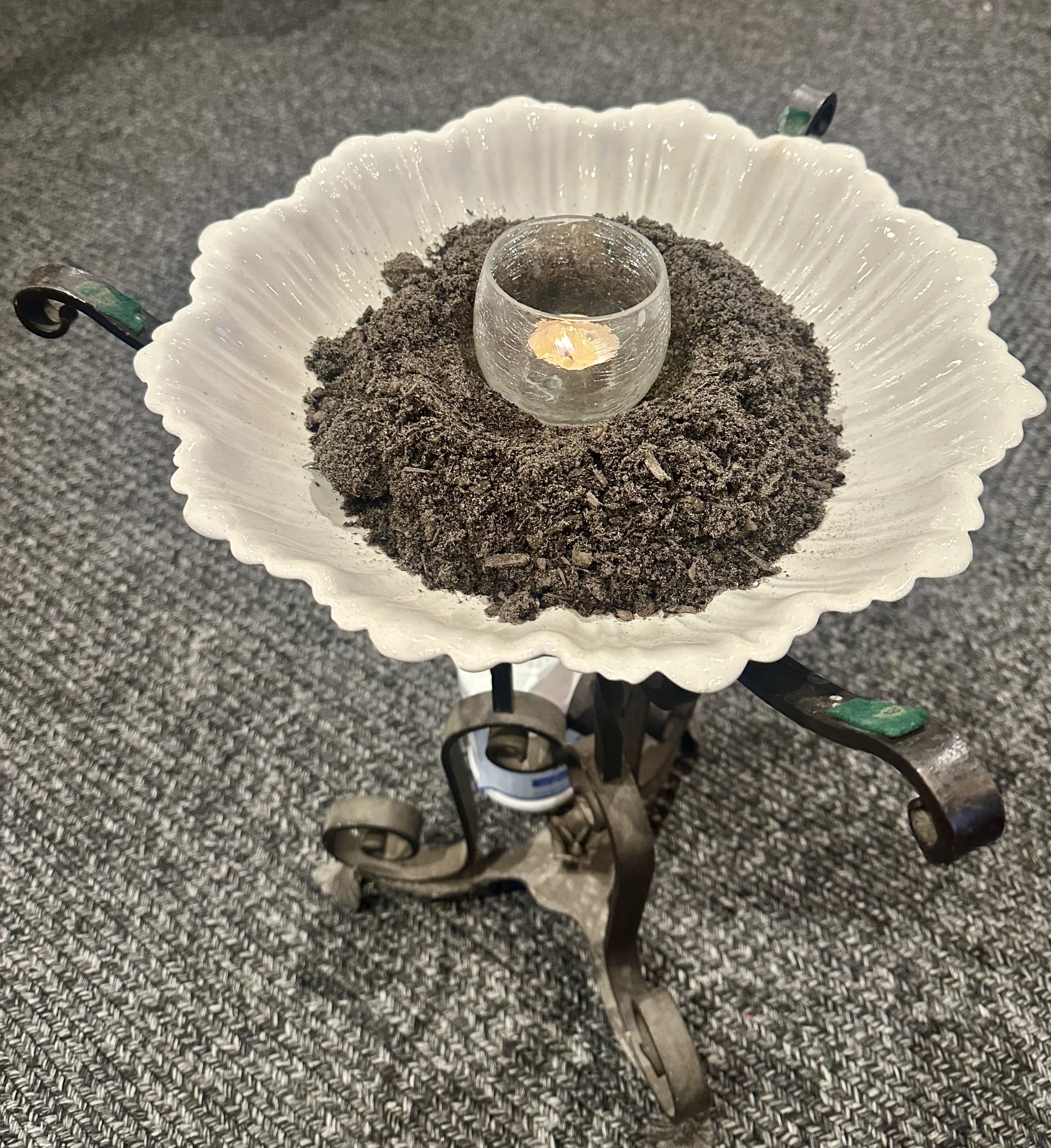 In silence, come to the center with your pot and touch the dirt, the dirt from where we come from. As you touch the dirt, say whatever prayer is on your heart. Scoop a handful of dirt in your pot to cover your seed paper. As you return to your seat, let the silence speak to you.