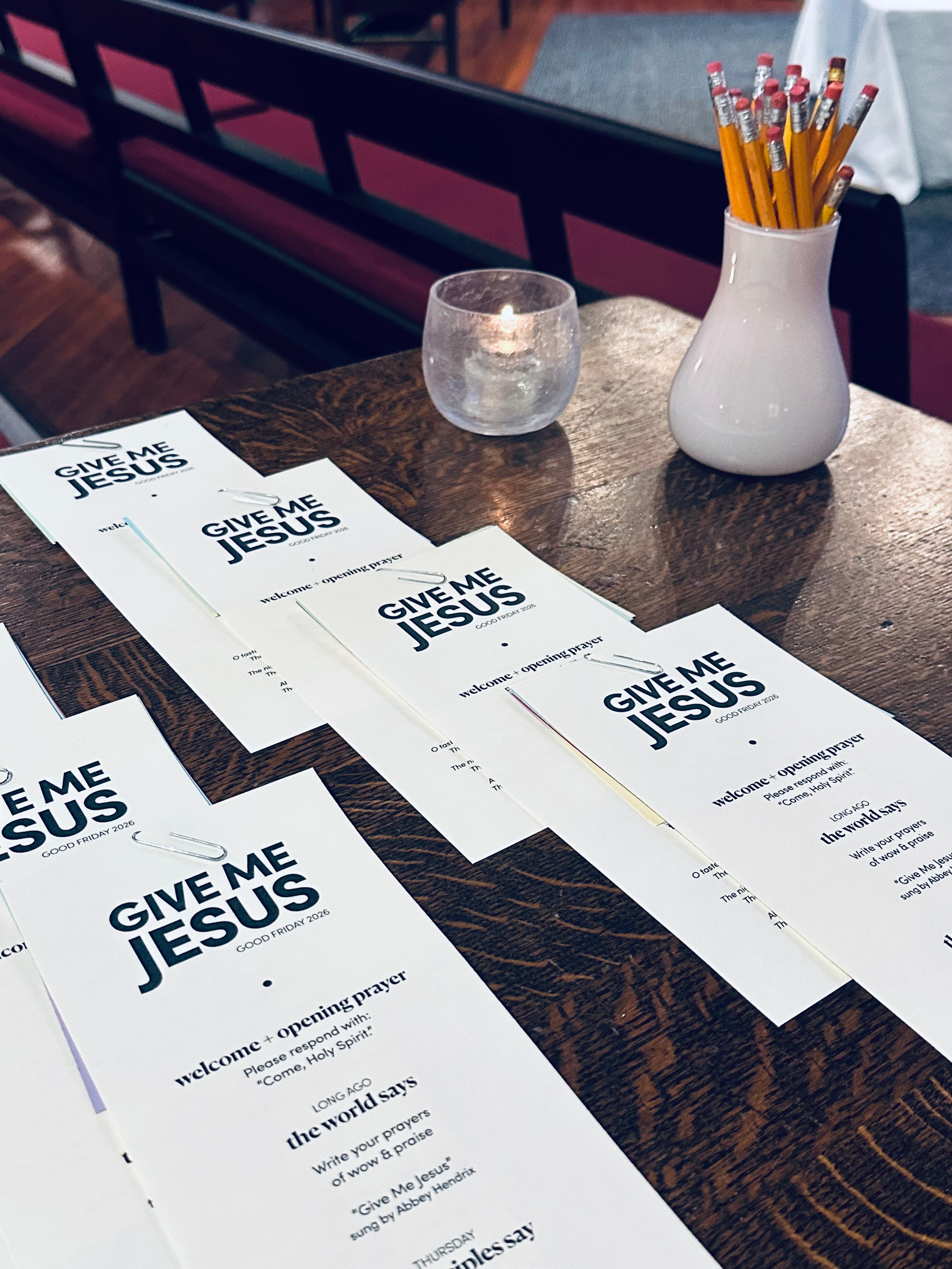 On Thursday, as their time with him was drawing to a close, the disciples said, “Give me Jesus” as they gathered around a table passing bread of Jesus’ life and wine of Jesus’ promise. Together, as they wondered and worried about the future, they remembered the time they shared: the miraculous moments, the joyful community, and most importantly, the love for one another.